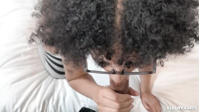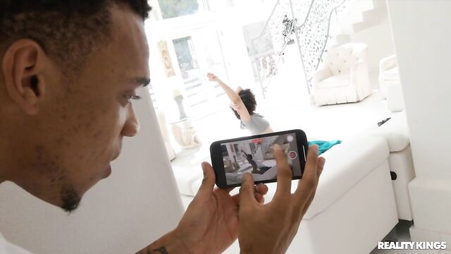 Description:Curvy babe Diamond Banks is vexed to find her roommate, Lawson Jones, playing video games in the living room when she wants to do yoga. Ignoring Lawson’s protests, raven-haired Diamond interrupts his gaming and strikes a "doggy" pose on the floor. In retaliation, Lawson sneakily films Diamond’s amazing round ass before following the thong-clad hottie upstairs to her bedroom. Bespectacled Diamond starts playing with her pussy, and when she notices Lawson watching, she invites him in for a blowjob! Horny for a good fucking, Diamond takes every inch of the stud's big, thick cock, then she is showered in cum!
