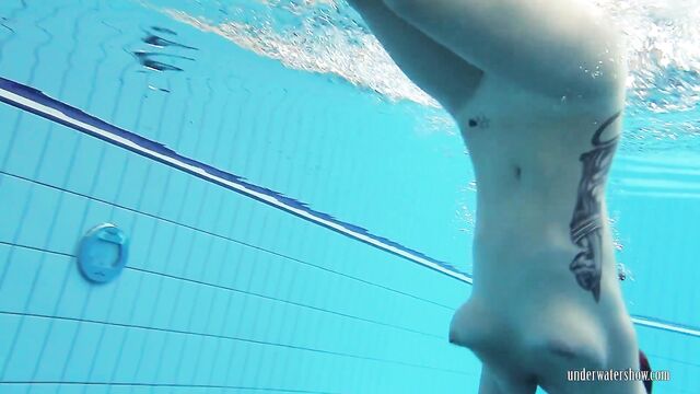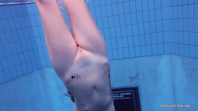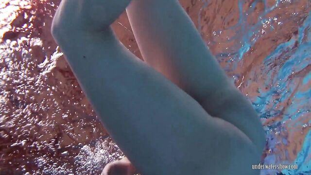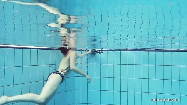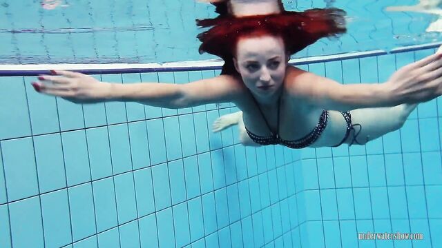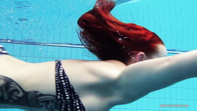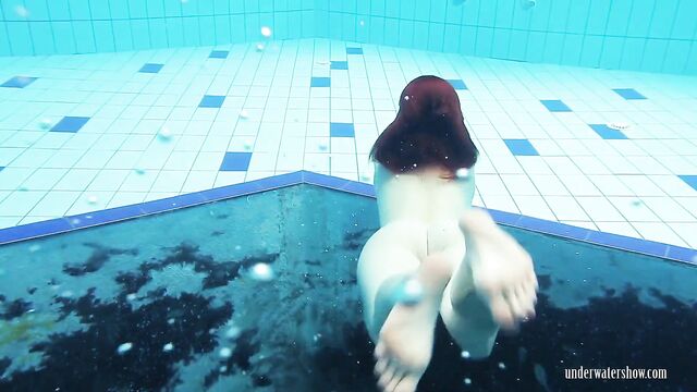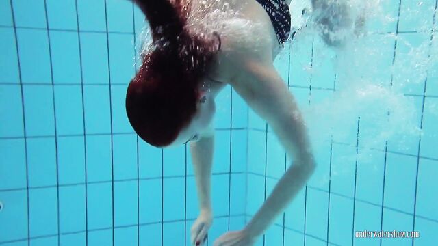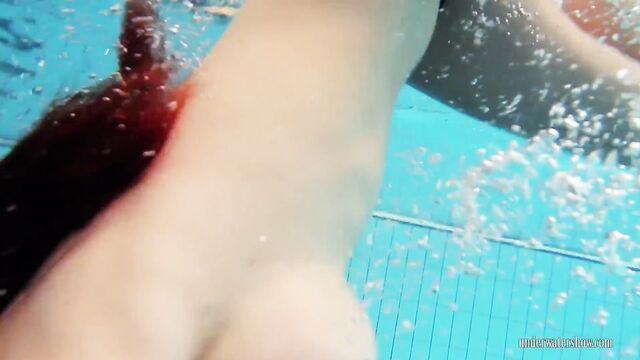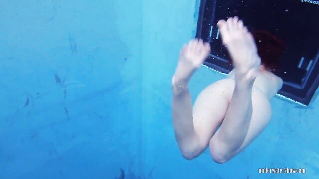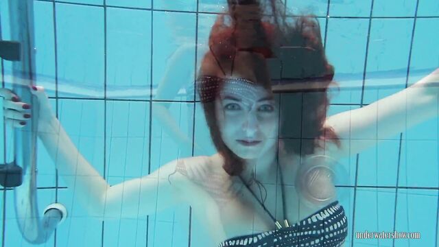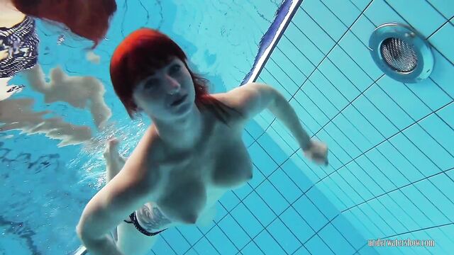 Donna amorevole in sesso capelli rossi di Underwater Show