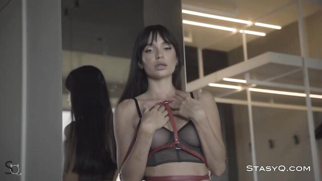Descrizione: She is unforgettable. StasyQ model Lolla-Vip looks like a goddess in opaque black lingerie and crimson straps that wrap around her small waist. Video release 517 presents this bombastic brunette, while Said Energizer and his camera bring attention to her fiery curves. Her tanned body is a sight to see, and her firm behind will leave you breathless. While Lolla-Vip pouts her lips, leather straps touch her waist and fit tummy. Soon enough, her booty is on display, perfectly round and tantalizing. That is only the beginning of the mesmerizing show. The dark-haired diva undresses, showing a pair of big, divine breasts and juicy nipples. Lolla-Vip gets rid of her thigh-high boots and continues to dance seductively. While her silky, tanned skin cuddles against the white sheets, the temptress looks at the camera with her gorgeous eyes. She doesn't stop touching her body, turning an ordinary afternoon into a sensational spectacle.