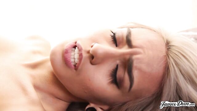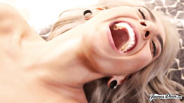 Description:Janice Griffith sits comfortably in a black chair in front of the camera. A brown round coffee table is just beside her. She wears a black racer back top and a pair of black tattered jeans. She genuinely smiles exposing her almost perfect pearly white teeth. Her eyes glisten every time she smiles. She says that when it comes to pussy eating, she isn’t really sure what pleasures her and what makes her orgasm. But she is sure of one thing; she loves having her pussy eaten. Janice is now naked. Her small tits exposed. Her nipples hard as fuck. Nothing is left on her body except for her piercings and tattoos. From the expressions of her face; eyes shut, lips slightly open and smirking, something must already be happening down there. James Deen is already eating her pussy with her legs spread widely. He holds her legs in place because she reacts even at the slightest movement of his tongue and mouth on her sensitive body part. He lifts her legs up, as he wraps his arms around them and caresses her stomach with both of his hands. She laughs. He didn’t know she easily gets ticklish. As James continues devouring her wet pussy, Janice begins pleasuring herself by massaging her tits with her hands showing off her freshly-painted fingernails. The petite lady keeps laughing as the porn star eats her. The rubble on his face just turns her on even more. Janice grabs his hair and guides him into how she wants pussy eating to be done. He follows her guidance. The moment that James Deen slowly thrusts his warm tongue into her tight pussy, she reaches her peak. Janice Griffith orgasms. She arches her back and tightly grasps James’ hand as she releases her warm cum into his face.