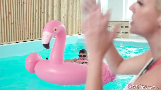 Description:Curvy swimming instructor Brittany Bardot is frustrated when her student, Tommy Cabrio, shows up late for their weekly lesson. Tommy has forgotten his swimming trunks, but Brittany orders him to get into the pool anyway! Tommy swims laps naked while his sexy blonde teacher spurs him on, until she eventually joins him in the water for a more hands-on lesson. After discovering Tommy's rock-hard erection, the tattooed MILF submerges to suck on it, periodically coming up for air! The tall, muscular stud returns the favour by eating out Brittany’s wet pussy, and afterwards the Czech babe bounces on his long, thick cock in cowgirl. Following an intense pounding in doggystyle and missionary position, Tommy reaches climax and creampies Brittany!