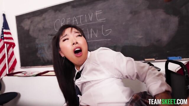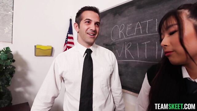 Description:Elle’s dream is to write the raunchiest erotica on the planet, but there is one problem – she’s got no experience sexually. Her teacher, Mr. Rock, feels bad for Elle, so he is willing to help her improve her craft. He lets Elle suck his cock, so she does, tenderly and slowly, feeling every inch of it as it slides down her throat. Then he kisses her neck, rubs her tits, lies her down on his desk, and eats out her innocent pussy. She loves every second of it and is overflowing with newfound inspiration. Mr. Rock gently pushes himself inside of Elle and rubs her clit. She is a quick learner, and shortly after, she eagerly rides his dick. He bends her over and fucks her hard from behind before he finishes in her mouth.