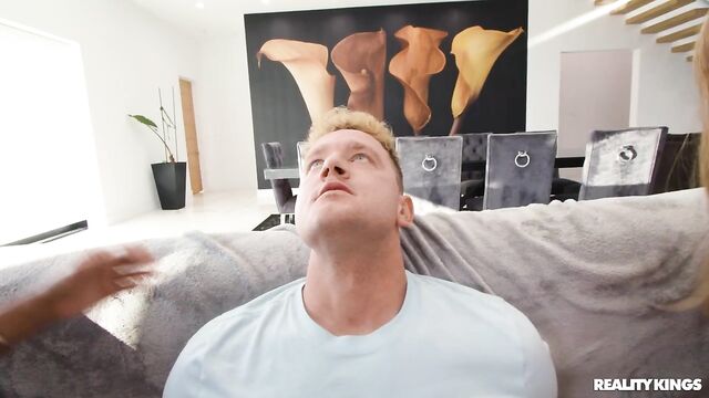 Description:Gamer girl Angel Youngs invited her BFF Asteria Diamond over for a slumber party, and these competitive babes will do whatever it takes to win, including shaking their tits in each other's faces! When their controllers start to vibrate, they get horny and decide to put them to a better use. Soon they're licking each other's pussies and scissoring on the couch... until they notice Angel's stepbrother, Van Wylde, watching them in amazement! The babes pull him over so they can use that joystick, and lucky Van gets to score before cumming on their faces!