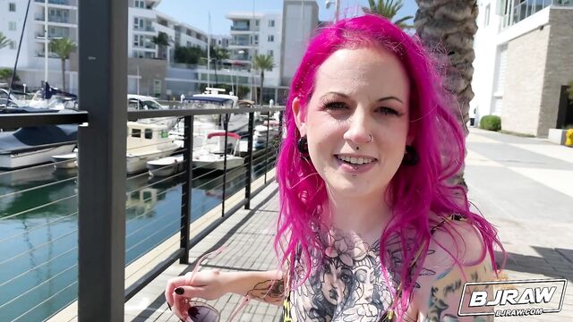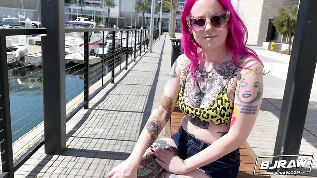 Descrizione: I met the most interesting girl today. Her hair and her tattoos are what caught my eye, but she loved showing me her other body modifications. I had a feeling she would be down for showing me more, so I invited her over. I was right! She showed me what a good cocksucker she is and I showed her what her face looks like plastered in cum!