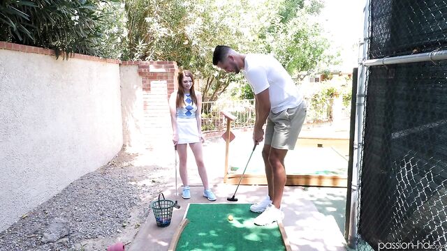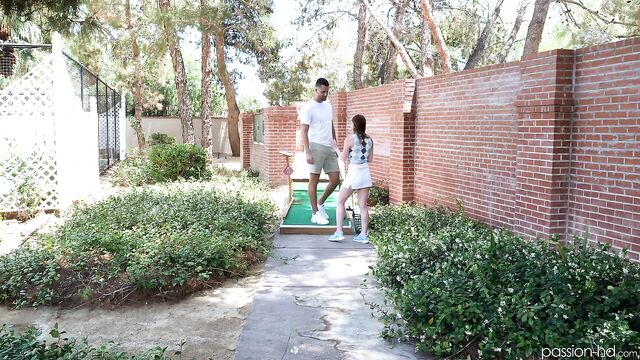 Description:Mazy has a golf date with Dan on a private miniature gold course. They flirt during their game and Mazy escalates the situation by stripping and masturbating on the course.