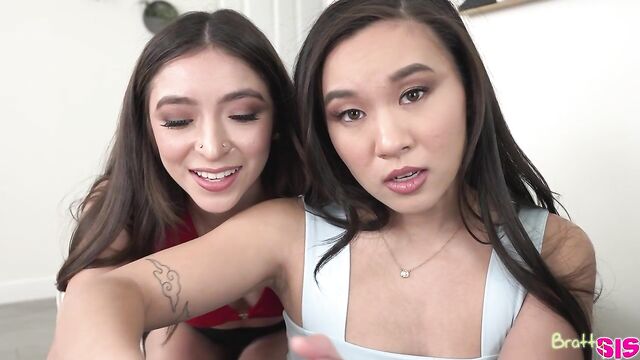 Description:Amber Summer and Kimmy Kimm are BFFs who love to do everything together. Everything. They've decided to open a therapy practice together. When they tell Amber's stepbrother, Joshua Lewis, about their plan, he tells them that the only life experience they have is sucking lots of dick. Amber reminds Joshua that she hasn't sucked his dick yet, and therefore neither has Kimmy. That being said, they're definitely interested.Later, Kimmy is watching Joshua as he lays on the couch. Amber joins her with a dildo and they sneak up behind him. Shoving the toy against Joshua's butt, the girls inform him that they need pegging experience. He refuses, but he does agree to let them practice their regular therapy questions on him. Kimmy instantly begins asking questions about his feelings for his stepsis, Amber. Just the thought gets Joshua nice and hard, which leads Kimmy to ask if she can haul the salami out for him. Joshua tries to say that Amber can't touch, but Kimmy grabs her friend's hand to deliver a double handie. How can Joshua say no to that?The trio relocates to the bedroom, where Kimmy hops onto the D and goes for it in cowgirl. She ultimately talks Joshua into letting Amber go for a reverse cowgirl ride. Now that it's a full threesome, Kimmy gets on her back and lifts one leg in the air to invite Joshua back inside as Amber rides Kimmy's mouth. On her knees, Amber takes a doggy style pussy pounding until Joshua pulls out to nut all over his stepsister's ass. As the girls make out with cummy kisses, Joshua admits that their therapy was effective.