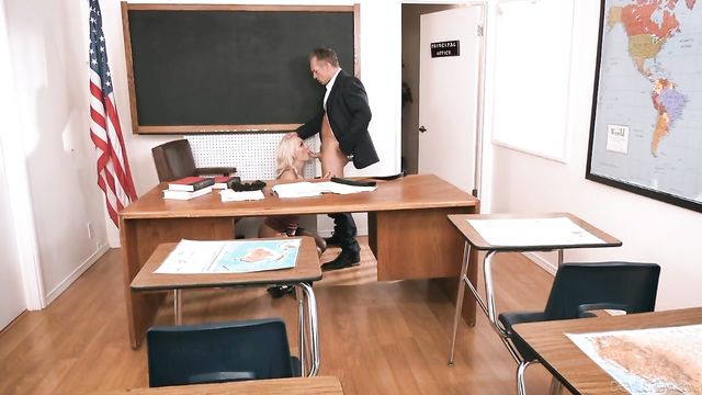 Description:Kenzie Taylor is a elementary school teacher who works with her former lover Mr. London the principal of the school. He also happens to be married to one of her best friends. Like a lot of ex lovers they are still close and he confides in Kenzie personal issues. Like for instance how his wife is not too keen on letting him hit her backdoor for some anal action. Now Kenzie was the anal queen and her longs for those hot tight nights in the sack plunging his wick stick into a stinking tight sphincter. He soon finds himself hitting hard and flirting with Kenzie and next thing you know they are having sex right on the desk in her classroom. Oh the shame of it. But it does feel great as Kenzie gives a dripping sloppy blowjob and proceeds to open all her holes for the rigid member of Mr. London. He ploughs her stink hole all over that desk and finally erupts in cum all over her face.