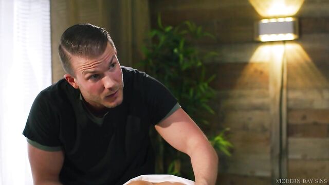 Description:Two horny masseurs, Codey Steele and Nathan Bronson, get ready for their next massage clients, Hime Marie and Hazel Moore. Nathan's pretty excited since he thinks they scored by having TWO women to massage and potentially provide happy endings for. But then Codey bursts his bubble by insisting that the women are girlfriends -- LESBIANS -- so they DEFINITELY won't want happy endings from the men. Today, no matter how horny they get, Codey and Nathan will have to remain strictly professional...But when Hime and Hazel arrive and strip down for their massages, the men get interesting signals of interest from Hime. Once they learn she's bisexual, it becomes obvious that Hime is looking for a SEXY erotic massage from the men -- right under her girlfriend's nose. That's when the men take turns massaging the women, keeping things platonic with Hazel while sneakily fooling around with Hime. Hazel remains blissfully unaware as Codey and Nathan both pleasure Hime, giving her all the cock she could ever want, however she wants it! It looks like Codey and Nathan didn't have to remain strictly professional after all...