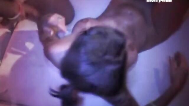 Notevole giovincella in filmato gangbang
