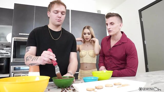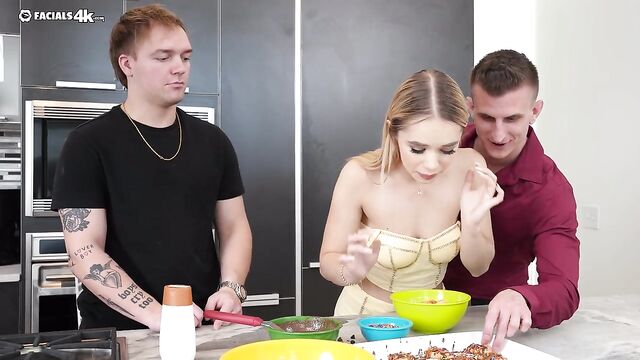 Description:Keira and her man take a cooking class for date night. Things her tup in the kitchen and the instructor catches the couple getting it on. They invite him to join in on the fun!