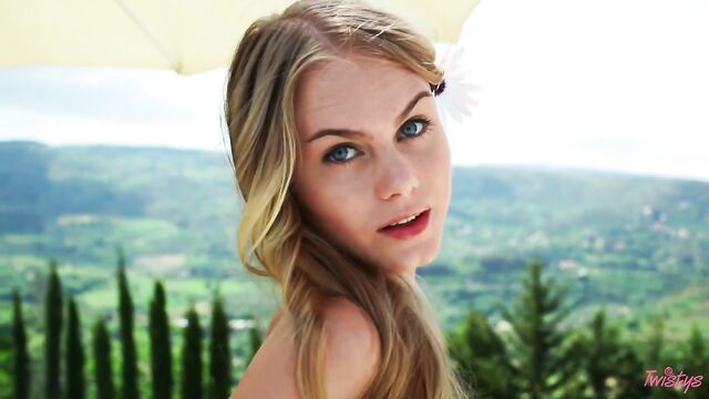 Descrizione: A stunning backdrop and a stunning lady? Could a sight be any more lovely? Pretty and blonde Nancy A hangs out on the rooftop in a yellow strapless dress, showing off her long legs and charming smile. She slides her dress off, revealing her round ass and small yet perky tits. Off comes her white panties, for a full view of her pink pussy. She spreads it wide for a view as great as the scenery behind her and then plays with it.