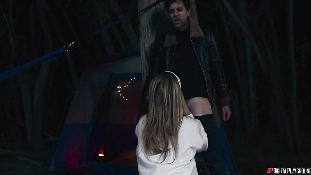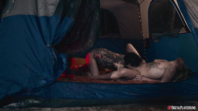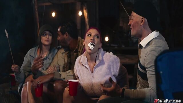 Description:Reunions are a time to brag to all your old friends about how great things are going... even when it's far from the truth. High school sweethearts Lisa and David (Aubree Valentine and Alex Jones) seem to be as in love as ever, but tensions roil beneath the surface, while Chrissy and Allan (Anna Claire Clouds and Zac Wild) can't say two words without arguing. Still, as the four finally make it to the campsite they're ready for a weekend of fun... at least until Marcy and Frank (Lily Lou and Small Hands) arrive. Frank gets upset with a brush-off from David and storms away from the campfire, and Chrissy goes after him... and before long the bad boy is reminding the preppy blonde of old times as she sucks his cock, then fucks him in the tent. But cheating is only the beginning of these sweethearts' worries...