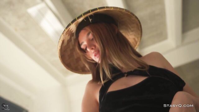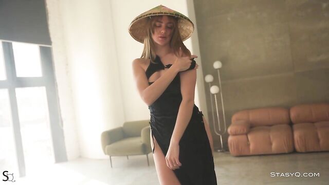 Description:A blue-eyed angel, JoyceQ, appears in front of Said Energizer's camera barefoot and pouty. She is ready to conquer this erotica world and become your next obsession. She is sweet, looking like a forest goddess with one of those point wooden hats. Ready to blow all our minds, this StasyQ model starts squeezing her boobs over the black fabric of her dress. While doing so, her sexy gaze is fixed on the camera, and her juicy lips are slightly parted. Video Release 589 then moves on to show the stunner's booty, which looks even more seductive when embellished with black panties. JoyceQ is on a sofa; she is curling her toes while her behind shakes for the camera. It is not long before JoyceQ takes the top of her dress off and shows a pair of firm and natural boobs, while a tattoo on her belly adds a touch of edgy to this erotic spectacle.
