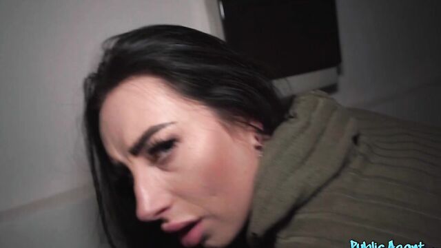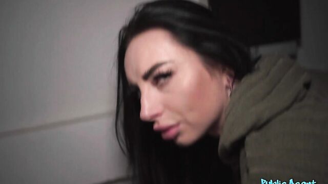 Description:It was a cold, snowy day when I bumped into this raven-haired babe named Salina Shein. We got chatting, and then I handed the tattooed cutie some euros to flash me her sexy boobs and thong-clad booty. Feeling horny, I offered Salina more cash for a blowjob, which she accepted! The cum-hungry slut dropped to her knees and started sucking me off, and then we found somewhere more secluded to continue our naughty fun. Sticking out her curvy ass, Salina took a doggy fucking from behind, and then she rode me in reverse while I spanked her. Next, the filthy mare spread her legs and let me bang her shaved pussy in missionary position, and then she wanked me off until I spunked on her tongue!