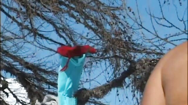 Description:Judith Fox walks around in the snow trying to attract some attention from male skiers. A couple of guys take notice and soon she is on her knees sucking one cock after the other. After her pussy has had a workout she takes one dick in her ass while stroking the other. They DP her before it's over.