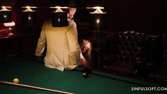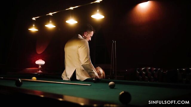 Description:Now it is Daisy's turn. She invites the boss for a game of pool, but he does not stand a chance. Daisy thinks that he may be more fun to play with, when his pants are off...