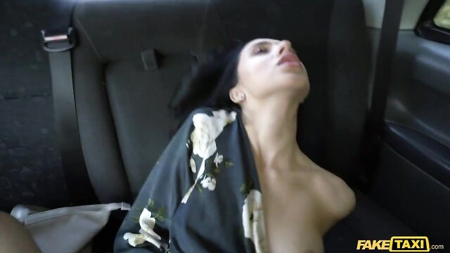 Description:I picked up Alyssa Bounty, who was on her way to a friend's wedding. She was in a bit of a rush, so she asked if I minded if she used the taxi to change. Of course I didn't mind, I was delighted to see her take her clothes off. She had great boobs, and when she slipped off her bottoms, I liked to see her bum. She was having trouble with her make up, so I offered to help. We pulled over and I did her make up, and this turned her on, so she asked if she could see my dick. She liked what she saw, and then leaned back so I could lick her shaved pussy. I put a finger in her ass and she moaned for me, so we had filthy anal sex all over the back seat! Alyssa gave me a blowjob, then I kept fucking her tight ass until I pulled out to cum on her booty cheeks!