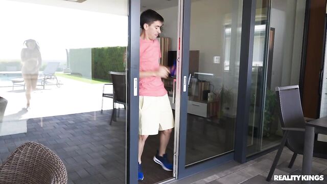 Descrizione: When Jordi El Nino Polla gets home to find his hot stepmom Octokuro sunbathing naked by the pool, he sneaks up and steals her cast-off bikini, running into the house and locking her out! Octokuro bangs on the door and tells Jordi to let her in, then tries to persuade him by pressing her big tits against the glass. In the end, Jordi comes out to get his cock sucked by the sexy tattooed babe. Octokuro titty-fucks him and rides him on the lounge chair. No naughty deed goes unrewarded!