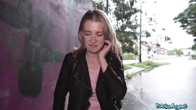 Description:It was a wet, rainy day when I met sexy blonde Adriana, who was taking shelter in an underpass. We got chatting, and I offered the beautiful Euro some cash to show me her hot body. Adriana flashed me her tight, thong-clad ass, and she even let me squeeze it! After seeing her perfect titties, my dick was hard, so I handed over a few more euros in exchange for sexual favours. Adriana accepted the money, and she got on her knees to deepthroat my throbbing erection in a fantastic blowjob! Afterwards, the petite babe took a doggystyle pounding from behind, and then I flipped her over and banged her in missionary position until I came all over her pussy!