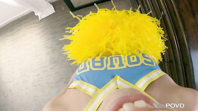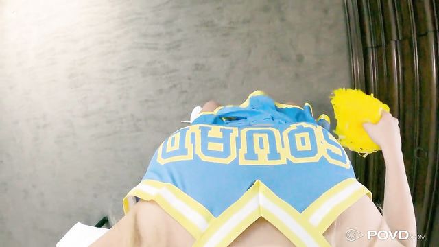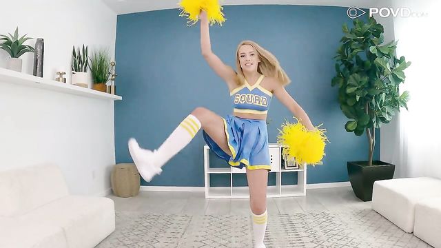 Descrizione: Horny cheerleader starts getting naked and masturbates while practicing her cheer routine.