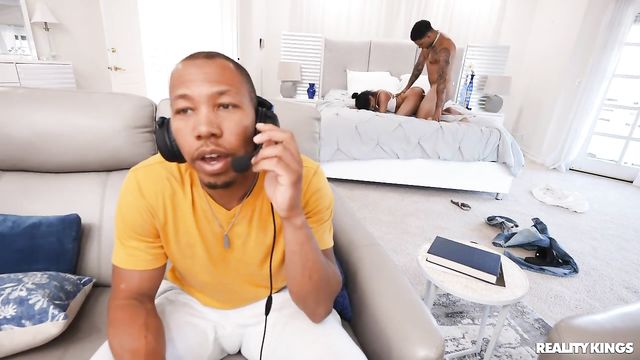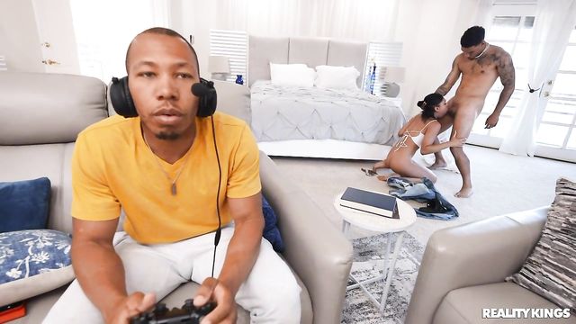 Description:Ryder Rey is horny, but her boyfriend Ricky Johnson has been gaming for hours and shows no sign of stopping! Ricky won't press her buttons, so Ryder turns her attention to player two, Air Thugger, who's more than happy to have the little hottie take out his joystick. Ricky doesn't notice a thing when his gf takes his buddy to the bed and gets her pussy eaten, then slobbers all over Air's cock right behind his back. With his headphones on, he doesn't even hear Ryder's moans as she gets her pussy pounded nice and deep by that big dick!