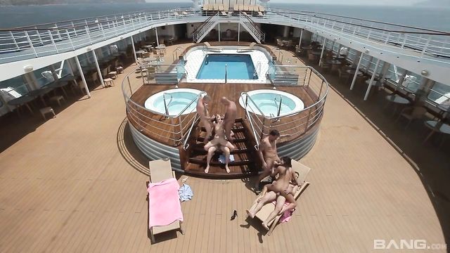 Description:Aliz and Melanie Memphis were sunning themselves on the upper deck when the coast guard came aboard. They couldn't believe their luck at having five cocks to play with all to themselves! There was enough man meat to go around during this top side orgy that had both Aliz and Melanie getting double penetrated!