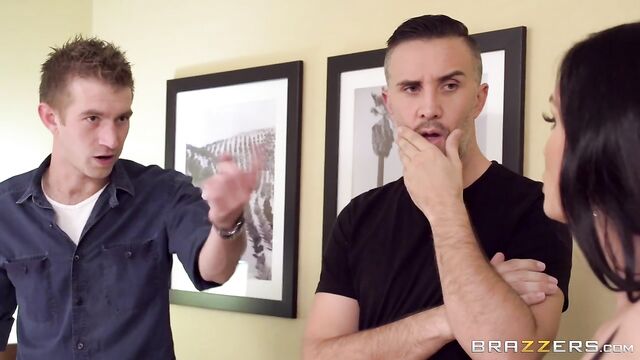 Description:Diamond Foxxx is an undercover cop posing as a stripper to bring in notorious criminals Danny D and Keiran Lee. She almost gets busted when Danny finds her wire, but as soon as she takes out her big fake tits, they forget all about that! She keeps them distracted by deepthroating their big cocks, and then gets in the middle of those big-dicked crooks so they can fuck her pussy and her mouth at the same time. Getting her pussy fucked isn't enough for this slutty MILF, though, so she spread her legs to take those huge dicks deep in her asshole too! The criminal scum double penetrated Diamond just the way she likes and then gave her two massive facials!