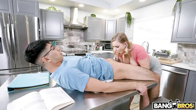 Description:Diego is trying to study but his Step Mom Daisy Diva won't get off his dick. Literally. She keeps bothering him and stroking his ego, and he has no idea she really wants to stroke his balls. Eventually she goes for it and Diego is ready to take her to pound town. She sucks his meat clean and then sits on his nerdy face and gets pussy juice all over his glasses. Then she takes him by the dick to the living room and lets him fuck her like a little slut on the couch. He pipes her down proper and obviously cums on her face.